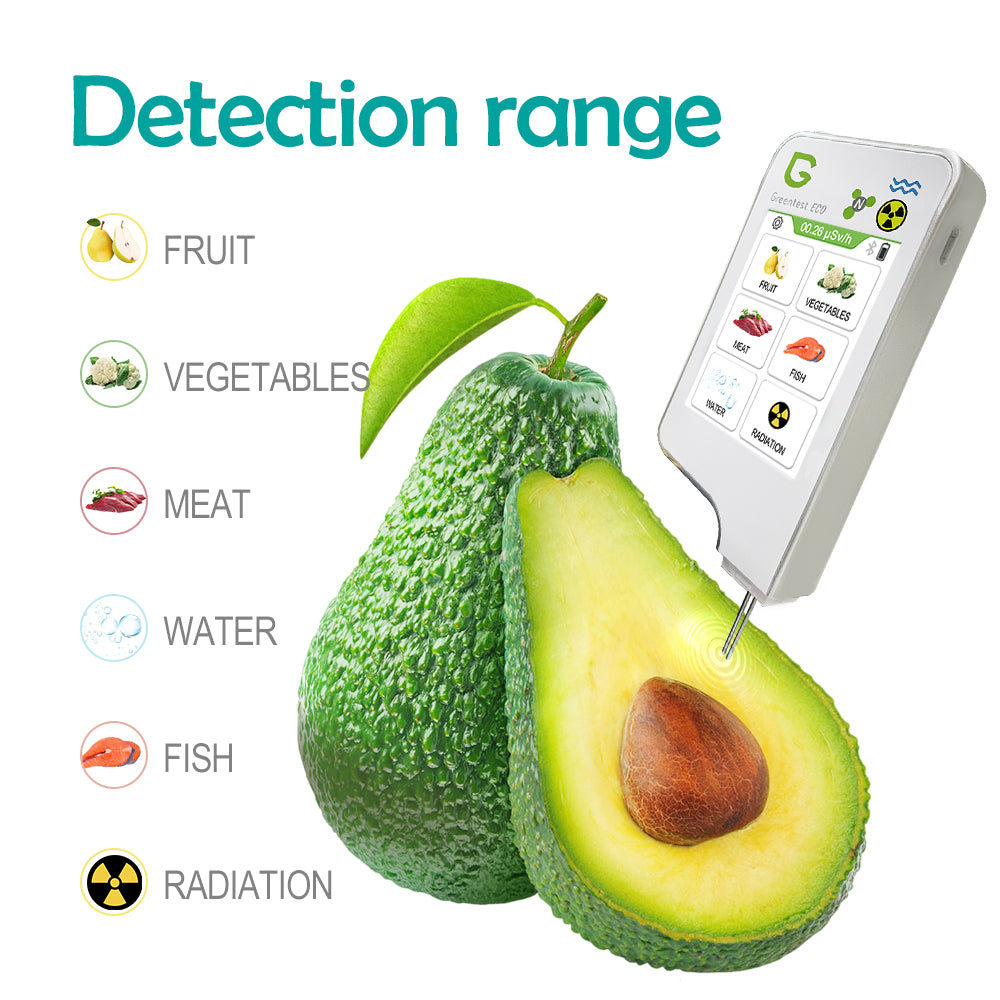 It features a built-in database of 64 commonly consumed fruits, vegetables, and meats, allowing you to test for nitrate contamination with precision and confidence. Additionally, it measures radiation levels in food, water, and the environment, as well as Total Dissolved Solids (TDS) to assess water quality and hardness.